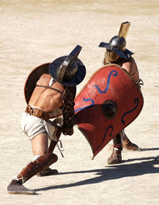 Le spectacle « Les Gladiateurs du Haut-Empire » se déroule en 3 parties. Dans un premier temps, un orateur présente l’histoire de la gladiature et transmet des informations historiques des plus récentes issues de recherches documentées. Puis, les gladiateurs s’affrontent dans des duels arbitrés : ces duels non simulés font encore régulièrement vibrer les foules, notamment à Arles, dans l’amphithéâtre. Dans un dernier temps, l’équipe répond aux questions du public et reçoit petits et grands pour un temps d’échange et de photos. Cette dernière partie est très appréciée du public.
